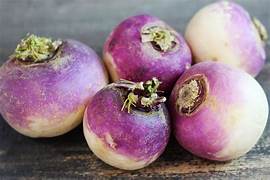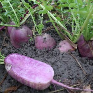 Navets violets ou jaunes en botte (fanes pour la soupe)